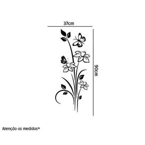 Adesivo de parede floral Medida: 37 x 90 cm As imagens anunciadas são ilustrativas Tamanho do adesivo O adesivo da foto parece grande Então atenção: O modelo que está na foto não se refere ao tamanho do adesivo anunciado. deixamos o adesivo grande para que você possa visualizar melhor o produto que está comprando