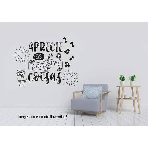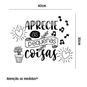 Adesivo de parede frase aprecie as pequenas coisas Medida: 40 x 30 cm As imagens anunciadas são ilustrativas Tamanho do adesivo O adesivo da foto parece grande