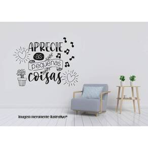 Adesivo de parede frase aprecie as pequenas coisas Medida: 70 x 53 cm As imagens anunciadas são ilustrativas Tamanho do adesivo O adesivo da foto parece grande