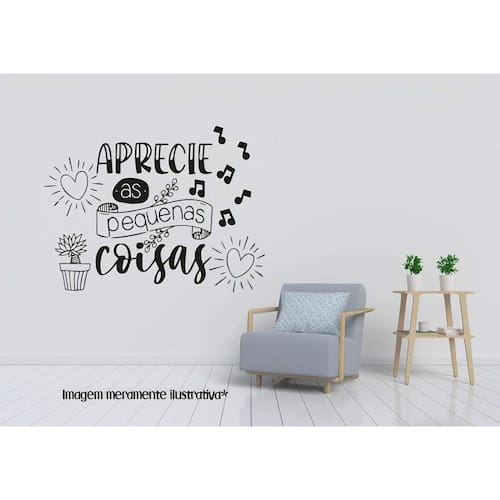 Adesivo de parede frase aprecie as pequenas coisas Medida: 70 x 53 cm As imagens anunciadas são ilustrativas Tamanho do adesivo O adesivo da foto parece grande