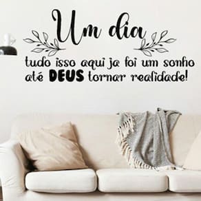 Adesivo de parede frase até deus tornar realidade modmaior Medida: 80 x 33 cm Atenção as medidas Os adesivos decorativos são produzidos com material de alta qualidade. As imagens anunciadas são ilustrativas