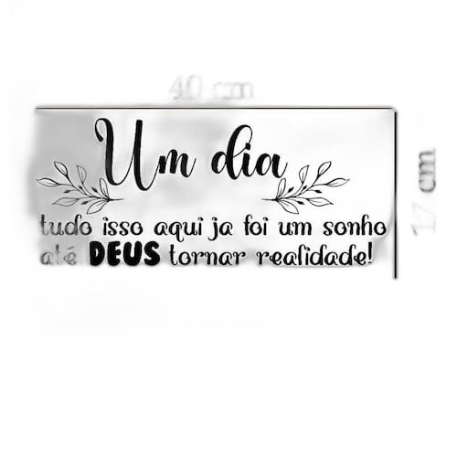 Adesivo de parede frase até deus tornar realidade Medidas: 50 x 20 cm Atenção as medidas Os adesivos decorativos são produzidos com material de alta qualidade. As imagens anunciadas são ilustrativas