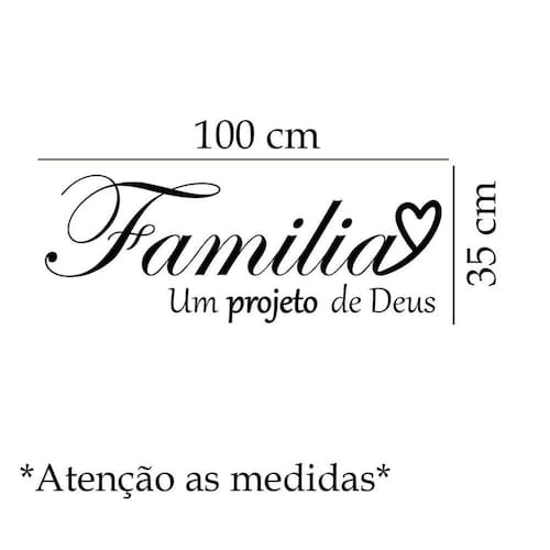Adesivo de parede frase família é um projeto de deus Medida: 100 x 35 cm Atenção as medidas Os adesivos decorativos são produzidos com material de alta qualidade. As imagens anunciadas são ilustrativas Tamanho do adesivo O adesivo da foto parece grande Então atenção: O modelo que está na foto não se refere ao tamanho do adesivo anunciado. deixamos o adesivo grande para que você possa visualizar melhor o produto que está comprando Material Vinil adesivo. É só destacar e colar Nossos adesivos são específicos para superfícies lisas, por isso se adequam a paredes, vidros, madeiras e demais superfícies sem texturas. Importante lembrar de conferir que o local para aplicação está devidamente limpo, sem poeiras, gorduras ou demais resíduos. Todos os nossos produtos são enviados com manual de instruções e dicas para aplicação. As imagens anunciadas são ilustrativas Pode haver variações na cor de acordo com as configurações do seu monitor. Confira todas as informações como medidas e quantidade na descrição do produto. Marca: Lojinha Da Luc