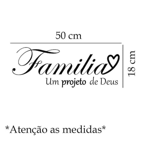 Adesivo de parede frase família é um projeto de deus Medida: 50 x 18 cm Atenção as medidas Os adesivos decorativos são produzidos com material de alta qualidade. As imagens anunciadas são ilustrativas Tamanho do adesivo O adesivo da foto parece grande Então atenção: O modelo que está na foto não se refere ao tamanho do adesivo anunciado. deixamos o adesivo grande para que você possa visualizar melhor o produto que está comprando Material Vinil adesivo. É só destacar e colar Nossos adesivos são específicos para superfícies lisas, por isso se adequam a paredes, vidros, madeiras e demais superfícies sem texturas. Importante lembrar de conferir que o local para aplicação está devidamente limpo, sem poeiras, gorduras ou demais resíduos. Todos os nossos produtos são enviados com manual de instruções e dicas para aplicação. As imagens anunciadas são ilustrativas Pode haver variações na cor de acordo com as configurações do seu monitor. Confira todas as informações como medidas e quantidade na descrição do produto. Marca: Lojinha Da Luc