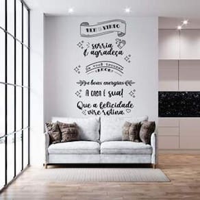 Adesivo de parede frase felicidade e rotina Medida: 45 x 70 cm As imagens anunciadas são ilustrativas Tamanho do adesivo O adesivo da foto parece grande Então atenção: O modelo que está na foto não se refere ao tamanho do adesivo anunciado. deixamos o adesivo grande para que você possa visualizar melhor o produto que está comprando