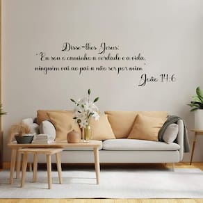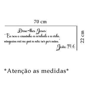 Adesivo de parede frase joão 14:6 Medida: 70 x 22 cm As imagens anunciadas são ilustrativas Tamanho do adesivo O adesivo da foto parece grande