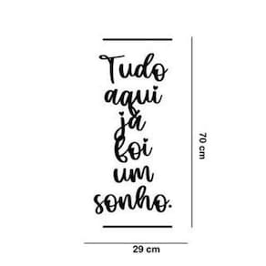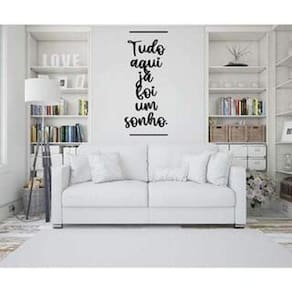 Adesivo de parede frase tudo aqui já foi um sonho Medida: 29 x 70 cm As imagens anunciadas são ilustrativas Tamanho do adesivo O adesivo da foto parece grande Então atenção: O modelo que está na foto não se refere ao tamanho do adesivo anunciado. deixamos o adesivo grande para que você possa visualizar melhor o produto que está comprando