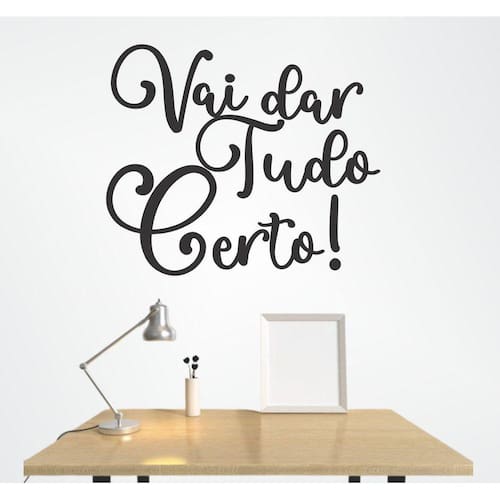 Adesivo de Parede Frase Vai dar tudo certo Motivacional Os Adesivos de Parede da Colakoala são ideais para decorar o berçário ou quartinho do seu bebê, a sala de estar, a cozinha ou cantinho do café, também cai muito bem no Espaço Kids, além de ser muito fácil de instalar. Essa é uma compra que você não irá se arrepender Produto: Adesivo de Parede Frases Vai dar tudo certoMedida 50 x 45cm Nossos adesivos são de fácil instalação, não havendo a necessidade de experiência ou habilidades especiais É só destacar e colar. Acompanha Manual de instalação Sinta o prazer de fazer você mesmo de forma profissional e com toque único e pessoal. Deixe seu cantinho único como você.