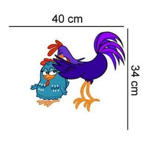 Adesivo de parede galinha pintadinha Medida: 40 x 34 cm As imagens anunciadas são ilustrativas Tamanho do adesivo O adesivo da foto parece grande Então atenção: O modelo que está na foto não se refere ao tamanho do adesivo anunciado. deixamos o adesivo grande para que você possa visualizar melhor o produto que está comprando