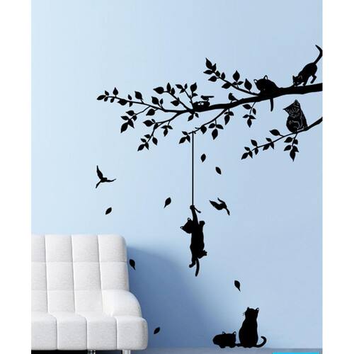 Adesivo de Parede Gatos Brincando na Árvore 135x101cm Preto