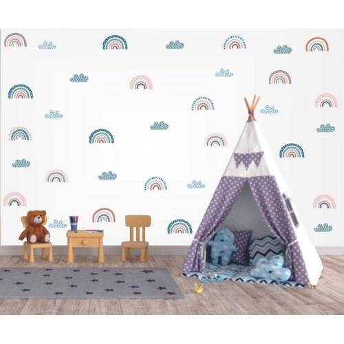 Composto por 50 arco-íris de 7cm cada e 40 nuvens de 6cm cada, este adesivo permite que você espalhe as miniaturas pela parede de forma criativa e divertida. A impressão UV sem fundo e sem bordas garante um acabamento perfeito, dando a sensação de que os desenhos foram pintados diretamente na parede.