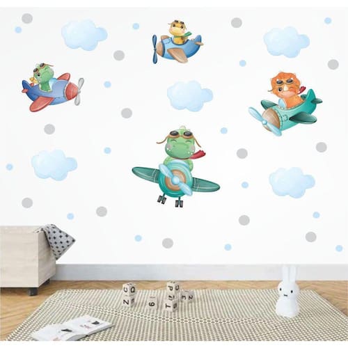 Adesivo de Parede Infantil Dinossauro Aviador Cute Os Adesivos de Parede da Colakoala são ideais para decorar o Berçário ou quartinho do seu bebê, a sala de estar, a cozinha ou cantinho do café, Também cai muito bem no Espaço Kids, além de ser muito fácil de instalar. Essa é uma compra que você não irá se arrepender Adesivo de Parede Infantil Dinossauro Aviador Cute Medida:Contém 01 Adesivo de Dinossauro no Avião medindo 50 x 55cm02 Adesivos de Dinossauros no Avião medindo 40x44cm cada01 Adesivo de Dinossauro no Avião medindo 30x26cm 04 Nuvens de 20cm60 Bolinhas Variadas para espalhar Adesivo de Vinil auto-colante com recorte Garantia de 3 meses e durabilidade de 5 anos para uso interno e 2 anos para uso externo Nossos adesivos são de fácil instalação, não havendo a necessidade de experiência ou habilidades especiais É só destacar e colar. Acompanha Manual de instalação Sinta o prazer de fazer você mesmo de forma profissional e com toque único e pessoal. Deixe seu cantinho único como você. Seja Bem vindo/a e boas compras