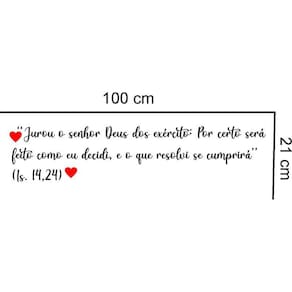 Adesivo de parede isaias 14:24 Medida: 100 x 21 cm As imagens anunciadas são ilustrativas Tamanho do adesivo O adesivo da foto parece grande