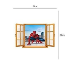 Adesivo de parede janela falsa homem aranha Medida: 73 x 50 cm As imagens anunciadas são ilustrativas Tamanho do adesivo O adesivo da foto parece grande Então atenção: O modelo que está na foto não se refere ao tamanho do adesivo anunciado. deixamos o adesivo grande para que você possa visualizar melhor o produto que está comprando