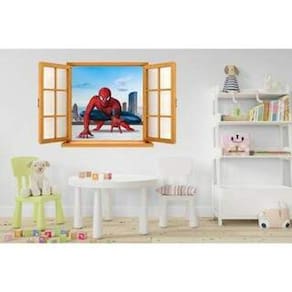 Adesivo de parede janela falsa homem aranha Medida: 73 x 50 cm As imagens anunciadas são ilustrativas Tamanho do adesivo O adesivo da foto parece grande Então atenção: O modelo que está na foto não se refere ao tamanho do adesivo anunciado. deixamos o adesivo grande para que você possa visualizar melhor o produto que está comprando