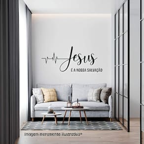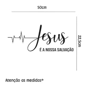 Adesivo de parede jesus é a salvação Medida: 70 x 31 cm As imagens anunciadas são ilustrativas Tamanho do adesivo O adesivo da foto parece grande
