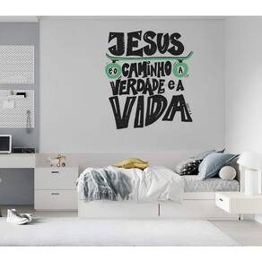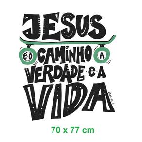 Adesivo de parede jesus é o caminho Medida: 70 x 77 cm As imagens anunciadas são ilustrativas Tamanho do adesivo O adesivo da foto parece grande Então atenção: O modelo que está na foto não se refere ao tamanho do adesivo anunciado. deixamos o adesivo grande para que você possa visualizar melhor o produto que está comprando Vantagens: - já vai recortado - fácil aplicação e sem sujeira, não precisa de cola. - acompanha manual impresso. - renovação do ambiente. É o fim das paredes brancas, sem vida Onde aplicar Em qualquer superfície lisa. Onde não aplicar Paredes úmidas, superfícies porosas, com relevo, com texturas, irregularidades ou com infiltrações. Local para aplicação: aplique onde sua imaginação mandar paredes, móveis, revestimentos, azulejos, tetos, janelas, portas, vitrines, vidraças, , carros, notebook, banheiro, geladeira e muito mais. Marca: Não Informado