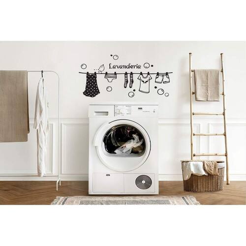 Adesivo de parede lavanderia mod22 Medida: 80 x 36 cm As imagens anunciadas são ilustrativas Tamanho do adesivo O adesivo da foto parece grande Então atenção: O modelo que está na foto não se refere ao tamanho do adesivo anunciado. deixamos o adesivo grande para que você possa visualizar melhor o produto que está comprando Vantagens: - já vai recortado - fácil aplicação e sem sujeira, não precisa de cola. - acompanha manual impresso. - renovação do ambiente. É o fim das paredes brancas, sem vida Onde aplicar Em qualquer superfície lisa. Onde não aplicar Paredes úmidas, superfícies porosas, com relevo, com texturas, irregularidades ou com infiltrações. Local para aplicação: aplique onde sua imaginação mandar paredes, móveis, revestimentos, azulejos, tetos, janelas, portas, vitrines, vidraças, , carros, notebook, banheiro, geladeira e muito mais. Marca: Não Informado