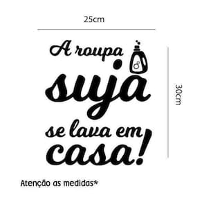 Adesivo de parede lavanderia roupa suja Medida: 25 x 30 cm As imagens anunciadas são ilustrativas Tamanho do adesivo O adesivo da foto parece grande Então atenção: O modelo que está na foto não se refere ao tamanho do adesivo anunciado. deixamos o adesivo grande para que você possa visualizar melhor o produto que está comprando