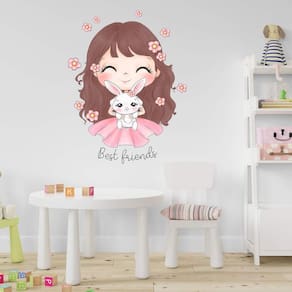 Adesivo de parede menina e seu coelho Medida: 46 x 60 cm As imagens anunciadas são ilustrativas Tamanho do adesivo O adesivo da foto parece grande Então atenção: O modelo que está na foto não se refere ao tamanho do adesivo anunciado. deixamos o adesivo grande para que você possa visualizar melhor o produto que está comprando Vantagens: - já vai recortado - fácil aplicação e sem sujeira, não precisa de cola. - acompanha manual impresso. - renovação do ambiente. É o fim das paredes brancas, sem vida Onde aplicar Em qualquer superfície lisa. Onde não aplicar Paredes úmidas, superfícies porosas, com relevo, com texturas, irregularidades ou com infiltrações. Local para aplicação: aplique onde sua imaginação mandar paredes, móveis, revestimentos, azulejos, tetos, janelas, Portas, vitrines, vidraças, , carros, notebook, banheiro, geladeira e muito mais. Marca: Lojinha Da Luc Adesivos Ean: 1070000012180