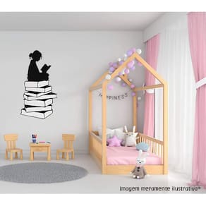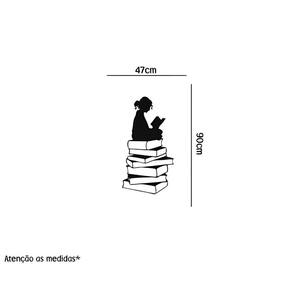 Adesivo de parede menina lendo livro Medida: 47 x 90 cm As imagens anunciadas são ilustrativas Tamanho do adesivo O adesivo da foto parece grande Então atenção: O modelo que está na foto não se refere ao tamanho do adesivo anunciado. deixamos o adesivo grande para que você possa visualizar melhor o produto que está comprando