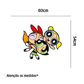 Adesivo de parede meninas super poderosas Medida: 60 x 54 cm As imagens anunciadas são ilustrativas Tamanho do adesivo O adesivo da foto parece grande Então atenção: O modelo que está na foto não se refere ao tamanho do adesivo anunciado. deixamos o adesivo grande para que você possa visualizar melhor o produto que está comprando