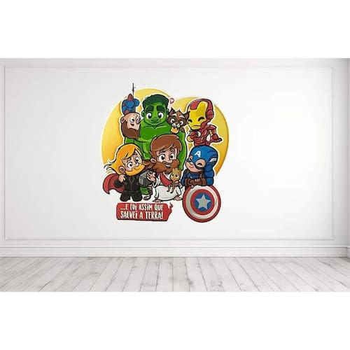 Adesivo de parede meu grande herói mod02 Medida: 46 x 50 cm As imagens anunciadas são ilustrativas Tamanho do adesivo O adesivo da foto parece grande