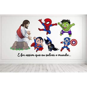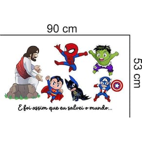 Adesivo de parede meu grande herói Medida: 90 x 53 cm As imagens anunciadas são ilustrativas Tamanho do adesivo O adesivo da foto parece grande Então atenção: O modelo que está na foto não se refere ao tamanho do adesivo anunciado. deixamos o adesivo grande para que você possa visualizar melhor o produto que está comprando Vantagens: - já vai recortado - fácil aplicação e sem sujeira, não precisa de cola. - acompanha manual impresso. - renovação do ambiente. É o fim das paredes brancas, sem vida Onde aplicar Em qualquer superfície lisa. Onde não aplicar Paredes úmidas, superfícies porosas, com relevo, com texturas, irregularidades ou com infiltrações. Local para aplicação: aplique onde sua imaginação mandar paredes, móveis, revestimentos, azulejos, tetos, janelas, portas, vitrines, vidraças, , carros, notebook, banheiro, geladeira e muito mais. Marca: Lojinha Da Luc Adesivos Ean: 8001250002563