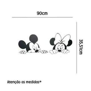 Adesivo de parede mickey e minnie Medida: 90 x 35 cm As imagens anunciadas são ilustrativas Tamanho do adesivo O adesivo da foto parece grande Então atenção: O modelo que está na foto não se refere ao tamanho do adesivo anunciado. deixamos o adesivo grande para que você possa visualizar melhor o produto que está comprando Vantagens: - já vai recortado - fácil aplicação e sem sujeira, não precisa de cola. - acompanha manual impresso. - renovação do ambiente. É o fim das paredes brancas, sem vida Onde aplicar Em qualquer superfície lisa. Onde não aplicar Paredes úmidas, superfícies porosas, com relevo, com texturas, irregularidades ou com infiltrações. Local para aplicação: aplique onde sua imaginação mandar paredes, móveis, revestimentos, azulejos, tetos, janelas, Portas, vitrines, vidraças, , carros, notebook, banheiro, geladeira e muito mais. Marca: Não Informado Ean: 7900000000747
