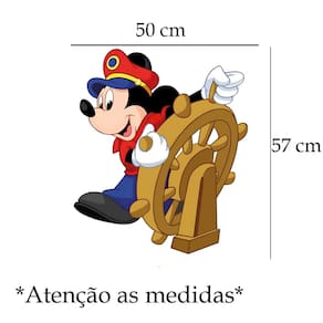 Adesivo de parede mickey marinheiro mod01 Medida: 50 x 57 cm As imagens anunciadas são ilustrativas Tamanho do adesivo O adesivo da foto parece grande