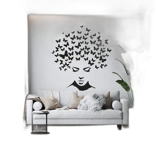 Adesivo de parede mulher e borboletas Medida: 63 x 70 cm As imagens anunciadas são ilustrativas Tamanho do adesivo O adesivo da foto parece grande Então atenção: O modelo que está na foto não se refere ao tamanho do adesivo anunciado. deixamos o adesivo grande para que você possa visualizar melhor o produto que está comprando Vantagens: - já vai recortado - fácil aplicação e sem sujeira, não precisa de cola. - acompanha manual impresso. - renovação do ambiente. É o fim das paredes brancas, sem vida Onde aplicar Em qualquer superfície lisa. Onde não aplicar Paredes úmidas, superfícies porosas, com relevo, com texturas, irregularidades ou com infiltrações. Local para aplicação: aplique onde sua imaginação mandar paredes, móveis, revestimentos, azulejos, tetos, janelas, Portas, vitrines, vidraças, , carros, notebook, banheiro, geladeira e muito mais. Marca: Não Informado