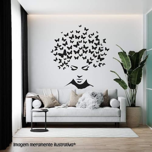 Adesivo de parede mulher e borboletas Medida: 72 x 80 cm As imagens anunciadas são ilustrativas Tamanho do adesivo O adesivo da foto parece grande Então atenção: O modelo que está na foto não se refere ao tamanho do adesivo anunciado. deixamos o adesivo grande para que você possa visualizar melhor o produto que está comprando Vantagens: - já vai recortado - fácil aplicação e sem sujeira, não precisa de cola. - acompanha manual impresso. - renovação do ambiente. É o fim das paredes brancas, sem vida Onde aplicar Em qualquer superfície lisa. Onde não aplicar Paredes úmidas, superfícies porosas, com relevo, com texturas, irregularidades ou com infiltrações. Local para aplicação: aplique onde sua imaginação mandar paredes, móveis, revestimentos, azulejos, tetos, janelas, Portas, vitrines, vidraças, , carros, notebook, banheiro, geladeira e muito mais. Marca: Não Informado Ean: 7900000009801