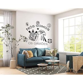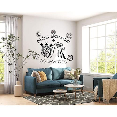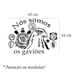 Adesivo de parede nós somos gaviões Medida: 60 x 44 cm As imagens anunciadas são ilustrativas Tamanho do adesivo O adesivo da foto parece grande Então atenção: O modelo que está na foto não se refere ao tamanho do adesivo anunciado. deixamos o adesivo grande para que você possa visualizar melhor o produto que está comprando