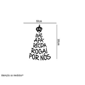 Adesivo de parede nossa senhora Medida: 17 x 30 cm As imagens anunciadas são ilustrativas Tamanho do adesivo O adesivo da foto parece grande Então atenção: O modelo que está na foto não se refere ao tamanho do adesivo anunciado. deixamos o adesivo grande para que você possa visualizar melhor o produto que está comprando