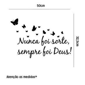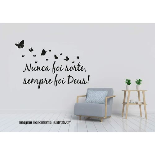 Adesivo de parede nunca foi sorte Medida: 50 x 33 cm As imagens anunciadas são ilustrativas Tamanho do adesivo O adesivo da foto parece grande Então atenção: O modelo que está na foto não se refere ao tamanho do adesivo anunciado. deixamos o adesivo grande para que você possa visualizar melhor o produto que está comprando Vantagens: - já vai recortado - fácil aplicação e sem sujeira, não precisa de cola. - acompanha manual impresso. - renovação do ambiente. É o fim das paredes brancas, sem vida Onde aplicar Em qualquer superfície lisa. Onde não aplicar Paredes úmidas, superfícies porosas, com relevo, com texturas, irregularidades ou com infiltrações. Local para aplicação: aplique onde sua imaginação mandar paredes, móveis, revestimentos, azulejos, tetos, janelas, Portas, vitrines, vidraças, , carros, notebook, banheiro, geladeira e muito mais. Marca: Lojinha Da Luc Adesivos Ean: 8001250002945