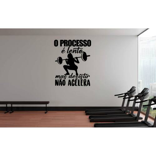 Adesivo de parede o processo é lento - academia Medida: 55 x 70 cm As imagens anunciadas são ilustrativas Tamanho do adesivo O adesivo da foto parece grande Então atenção: O modelo que está na foto não se refere ao tamanho do adesivo anunciado. deixamos o adesivo grande para que você possa visualizar melhor o produto que está comprando Vantagens: - já vai recortado - fácil aplicação e sem sujeira, não precisa de cola. - acompanha manual impresso. - renovação do ambiente. É o fim das paredes brancas, sem vida Onde aplicar Em qualquer superfície lisa. Onde não aplicar Paredes úmidas, superfícies porosas, com relevo, com texturas, irregularidades ou com infiltrações. Local para aplicação: aplique onde sua imaginação mandar paredes, móveis, revestimentos, azulejos, tetos, janelas, portas, vitrines, vidraças, , carros, notebook, banheiro, geladeira e muito mais.