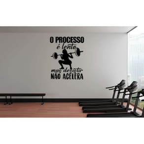 Adesivo de parede o processo é lento - academia Medida: 47 x 60 cm As imagens anunciadas são ilustrativas Tamanho do adesivo O adesivo da foto parece grande Então atenção: O modelo que está na foto não se refere ao tamanho do adesivo anunciado. deixamos o adesivo grande para que você possa visualizar melhor o produto que está comprando Vantagens: - já vai recortado - fácil aplicação e sem sujeira, não precisa de cola. - acompanha manual impresso. - renovação do ambiente. É o fim das paredes brancas, sem vida Onde aplicar Em qualquer superfície lisa. Onde não aplicar Paredes úmidas, superfícies porosas, com relevo, com texturas, irregularidades ou com infiltrações. Local para aplicação: aplique onde sua imaginação mandar paredes, móveis, revestimentos, azulejos, tetos, janelas, portas, vitrines, vidraças, , carros, notebook, banheiro, geladeira e muito mais. Marca: Não Informado