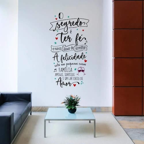 Adesivo de parede o segredo é ter fé As imagens anunciadas são ilustrativas Tamanho do adesivo O adesivo da foto parece grande Então atenção: O modelo que está na foto não se refere ao tamanho do adesivo anunciado. deixamos o adesivo grande para que você possa visualizar melhor o produto que está comprando