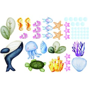 Os Adesivos de Parede da Colakoala são ideais para decorar o Berçário ou quartinho do seu bebê, a sala de estar, a cozinha ou cantinho do café, Também cai muito bem no Espaço Kids, além de ser muito fácil de instalar. Adesivo De Parede Oceano Vida Marinha Baleia e Corais Medidas: A Baleia mede 40x30cm A tartaruga e a água viva medem 30cm cada Os corais medem 35cm cada Acompanha os peixes, Estrelas do mar, E bolhas de ar para espalhar Adesivo de Vinil auto-colante com recorte sem fundos e sem bordas de 3 meses e durabilidade de 5 anos para uso interno e 2 anos para uso externo Nossos adesivos são de fácil instalação, não havendo a necessidade de experiência ou habilidades especiais É só destacar e colar. Acompanha Manual de instalação Ean: 2960008547007