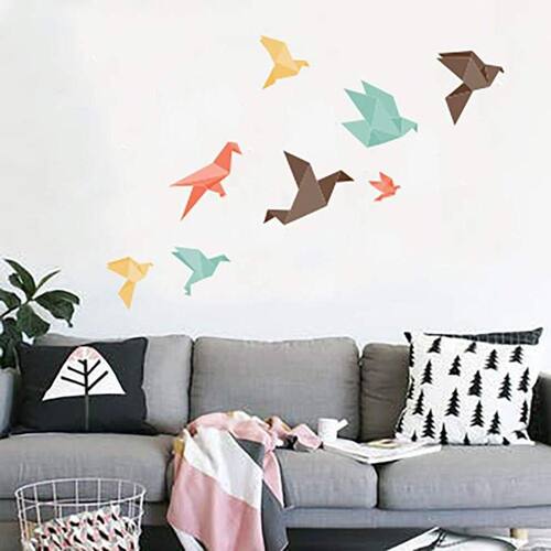 Adesivo de parede passaros origami Medida: 60 x 57 cm As imagens anunciadas são ilustrativas Tamanho do adesivo O adesivo da foto parece grande Então atenção: O modelo que está na foto não se refere ao tamanho do adesivo anunciado. deixamos o adesivo grande para que você possa visualizar melhor o produto que está comprando