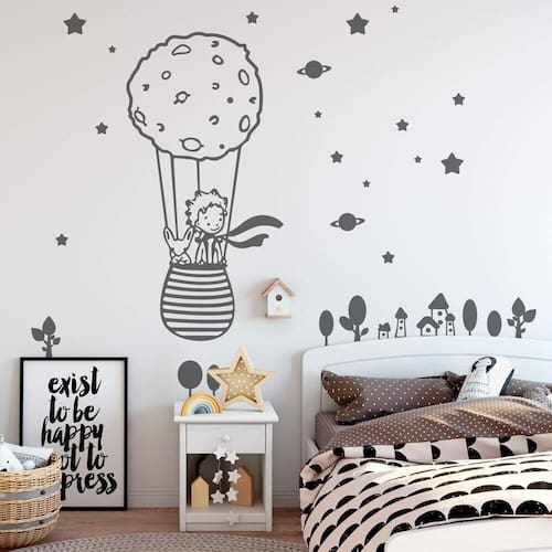 Adesivo de parede pequeno principe mod12 As imagens anunciadas são ilustrativas Tamanho do adesivo O adesivo da foto parece grande Então atenção: O modelo que está na foto não se refere ao tamanho do adesivo anunciado. deixamos o adesivo grande para que você possa visualizar melhor o produto que está comprando