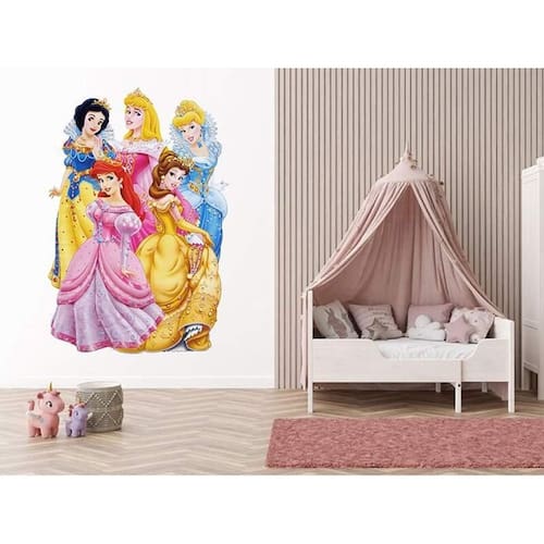 Adesivo de parede princesas Medida: 70 x 100 cm As imagens anunciadas são ilustrativas Tamanho do adesivo O adesivo da foto parece grande