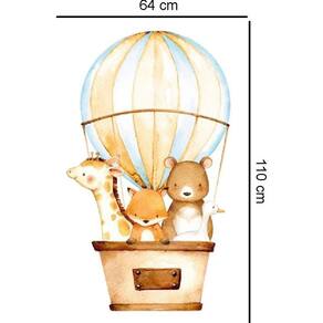 Adesivo de parede safari no balão mod02 Medida: 64 x 110 cm As imagens anunciadas são ilustrativas Tamanho do adesivo O adesivo da foto parece grande Então atenção: O modelo que está na foto não se refere ao tamanho do adesivo anunciado. deixamos o adesivo grande para que você possa visualizar melhor o produto que está comprando