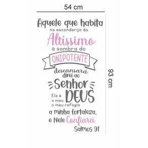 Adesivo de parede salmo 91 Medida: 54 x 93 cm As imagens anunciadas são ilustrativas Tamanho do adesivo O adesivo da foto parece grande Então atenção: O modelo que está na foto não se refere ao tamanho do adesivo anunciado. deixamos o adesivo grande para que você possa visualizar melhor o produto que está comprando