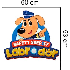 Adesivo de parede sheriff labrador Medida: 60 x 53 cm As imagens anunciadas são ilustrativas Tamanho do adesivo O adesivo da foto parece grande