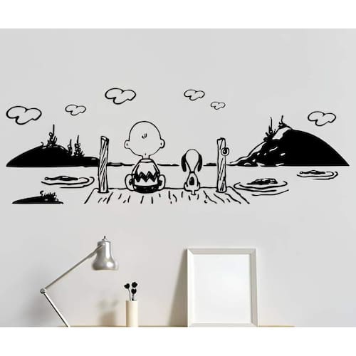 Adesivo de parede snoopy e charlie brown Medida: 80 x 27 cm As imagens anunciadas são ilustrativas Tamanho do adesivo O adesivo da foto parece grande