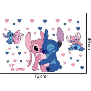 Adesivo de parede stitch e angel Medida: 76 x 49 cm As imagens anunciadas são ilustrativas Tamanho do adesivo O adesivo da foto parece grande Então atenção: O modelo que está na foto não se refere ao tamanho do adesivo anunciado. deixamos o adesivo grande para que você possa visualizar melhor o produto que está comprando Vantagens: - já vai recortado - fácil aplicação e sem sujeira, não precisa de cola. - acompanha manual impresso. - renovação do ambiente. É o fim das paredes brancas, sem vida Onde aplicar Em qualquer superfície lisa. Onde não aplicar Paredes úmidas, superfícies porosas, com relevo, com texturas, irregularidades ou com infiltrações. Local para aplicação: aplique onde sua imaginação mandar paredes, móveis, revestimentos, azulejos, tetos, janelas, Portas, vitrines, vidraças, , carros, notebook, banheiro, geladeira e muito mais. Marca: Não Informado Ean: 1070000016546