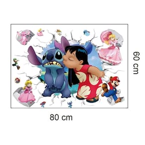 Adesivo de parede stitch e super mario Medida: 80 x 60 cm As imagens anunciadas são ilustrativas Tamanho do adesivo O adesivo da foto parece grande