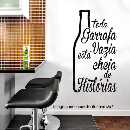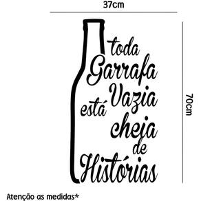 Adesivo de parede toda garrafa está cheia de historias Medida: 37 x 70 cm As imagens anunciadas são ilustrativas Tamanho do adesivo O adesivo da foto parece grande