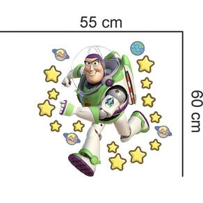 Adesivo de parede toy story - buzz lightyear Medida: 55 x 60 cm As imagens anunciadas são ilustrativas Tamanho do adesivo O adesivo da foto parece grande